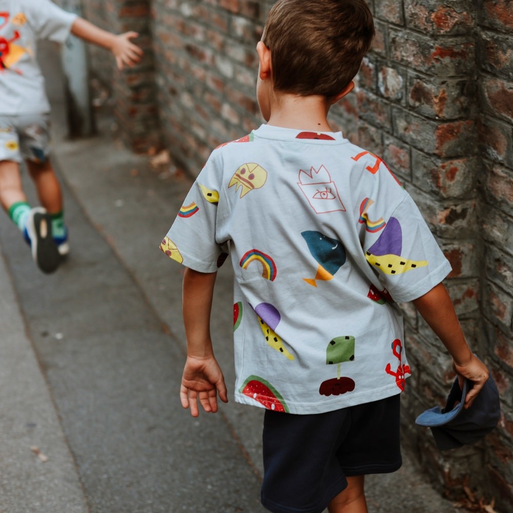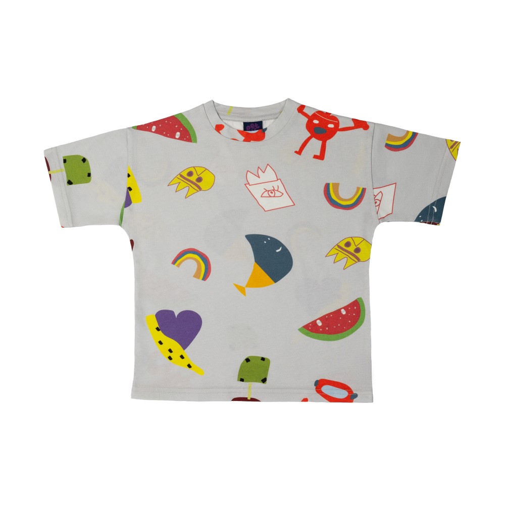 Majica iz posebne kolekcije „SABRANA DELA“, sa all-over štampom svih grafika aktuelne linije proizvoda. Majica je standardnog kroja od pamučnog singl materijala, sa okruglim izrezom i ravnim donjim rubom.