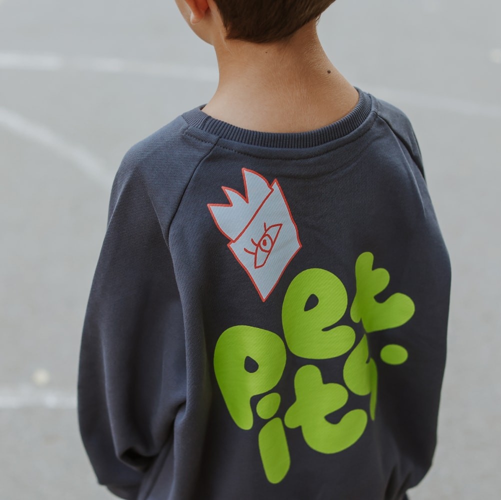 Dukserica od mekanog materijala izrađenog od mešavine pamuka sa četkanom unutrašnjom stranom i sa aplikacijom na leđima. Okrugli izrez, dugi rukavi, blago spuštena ramena i ranfle na rukavima i donjem rubu. Moderan kroj koji pruža udobnost i slobodan pokret, i odlično se kombinuje kako uz „casual“ tako i uz sportsku eleganciju.